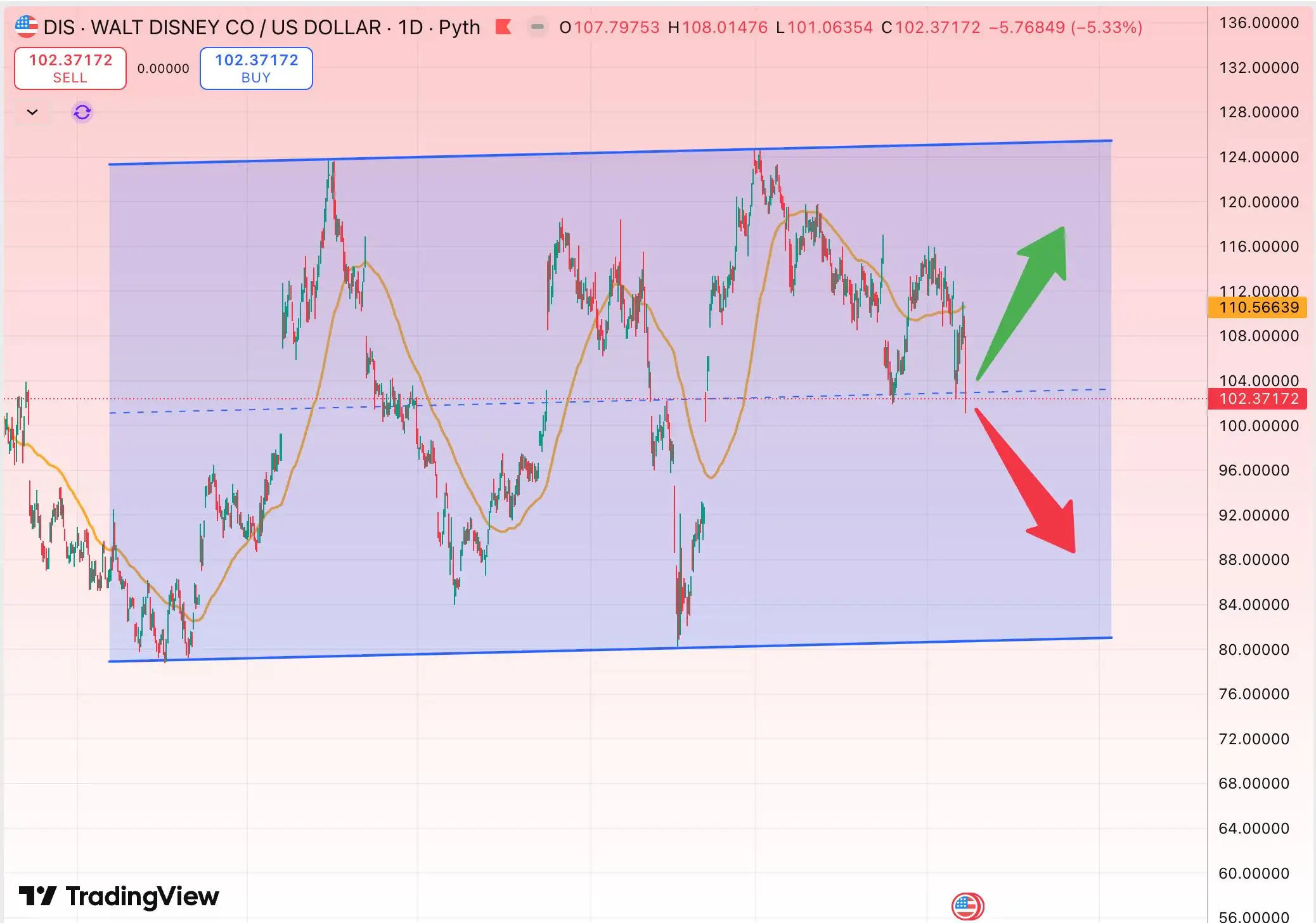 نماد مورد بررسی مربوط به شرکت The Walt Disney Company است که در بورس New York Stock Exchange معامله میشود و یکی از نمادهای مهم صنعت سرگرمی و رسانه در بازار آمریکا محسوب میشود.