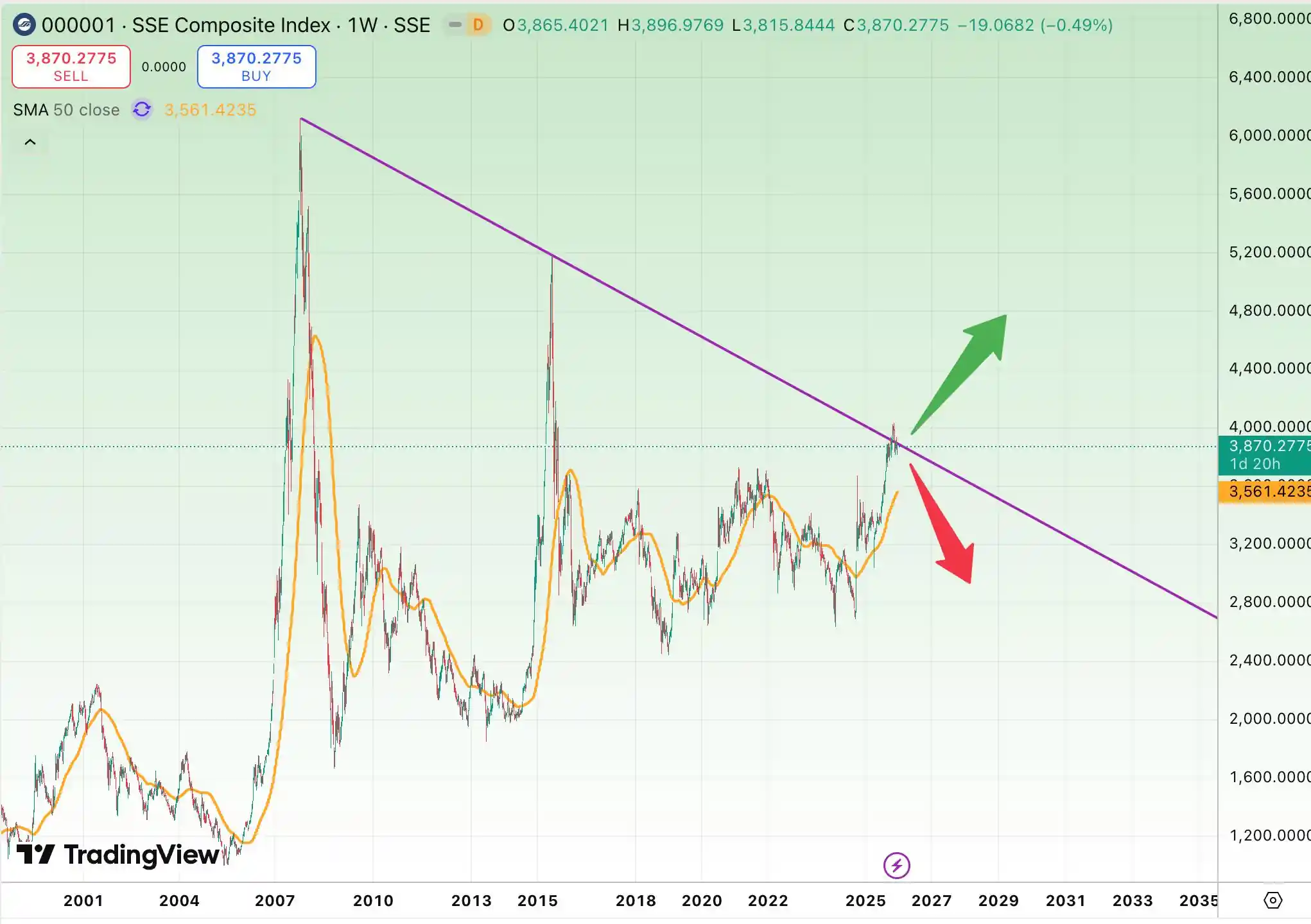 در چارچوب تحلیل شاخص Euronext می‌بینیم که شاخص N100 پس از دو سال اصلاح و نوسان، بار دیگر بالاتر از خط روند صعودی بلندمدت قرار گرفته است؛ خطی که با رنگ بنفش در چارت مشخص می‌شود.
